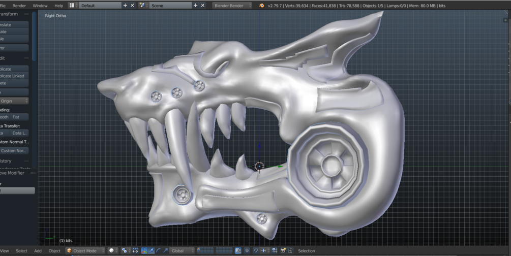 This here is a wolf tech mask 3D model in obj file. Sculpted in Sculptris and retopo in 3Dblender.